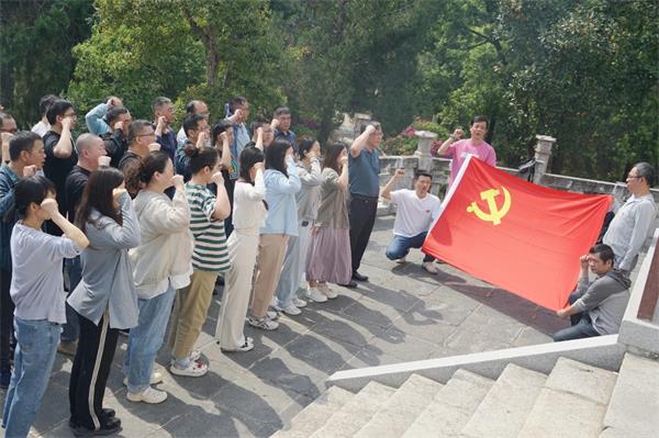 沿青石板拾級而上,在“革命烈士永垂不朽”的紀念碑前,大家駐足鞠躬、致敬先烈。“我志愿加入中國共產黨……”面對鮮紅的黨旗,大家高舉右拳,重溫了入黨誓詞。
