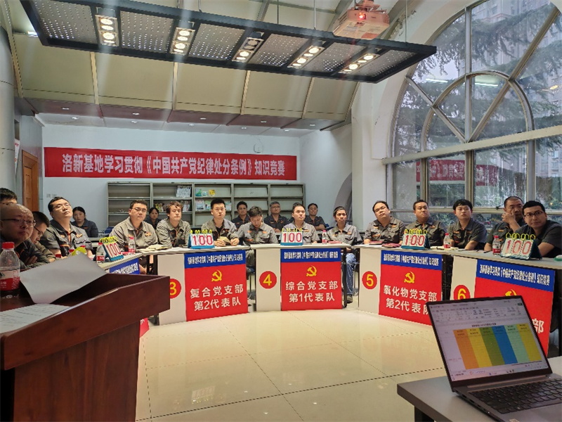 近日,為慶祝中國共產黨成立103周年,進一步增強全體黨員學習貫徹《中國共產黨紀律處分條例》的政治自覺和思想自覺,將遵規守紀內化于心、外化于行,由洛新基地黨委、紀委主辦的黨規黨紀知識競賽在基地三樓會議室隆重舉行,來自各黨支部6支代表隊18名選手集聚一堂,共同參與到這場知識盛宴中。